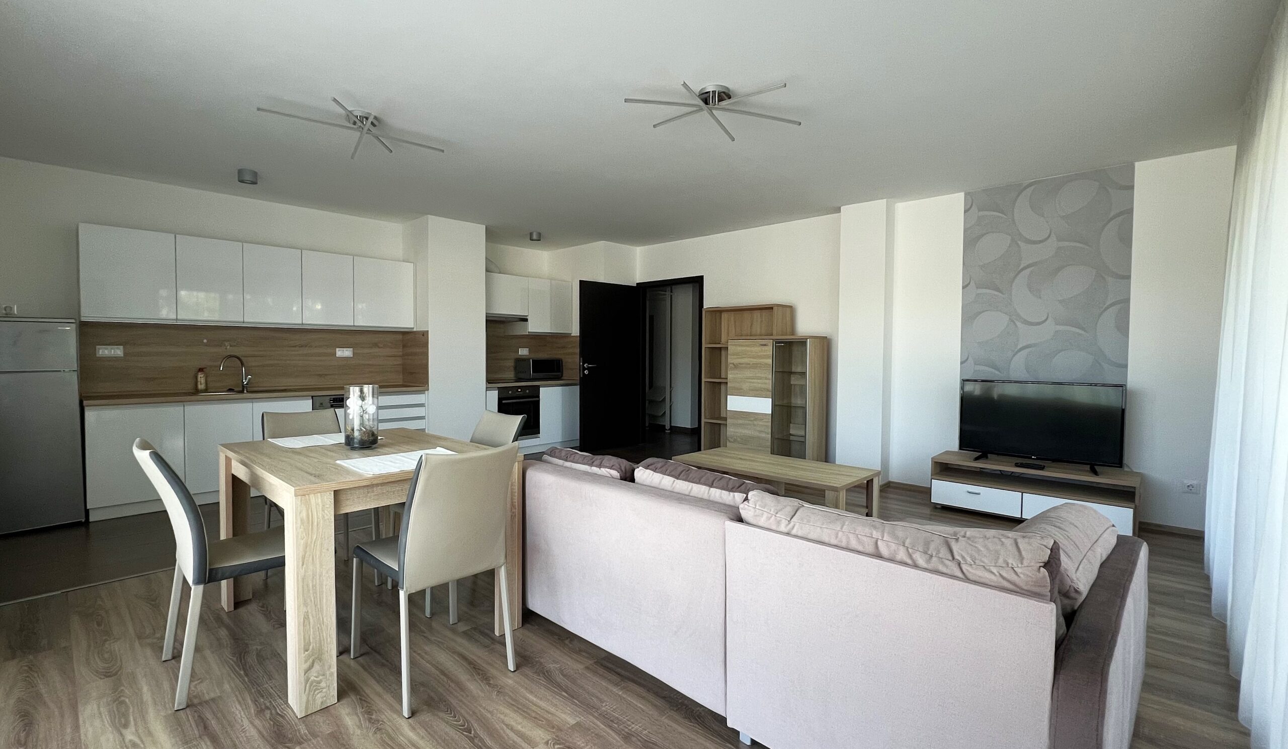 - Nappali: nagy képernyős smart TV, ágyazható sarokülő, fan-coil hűtő-fűtő rendszer