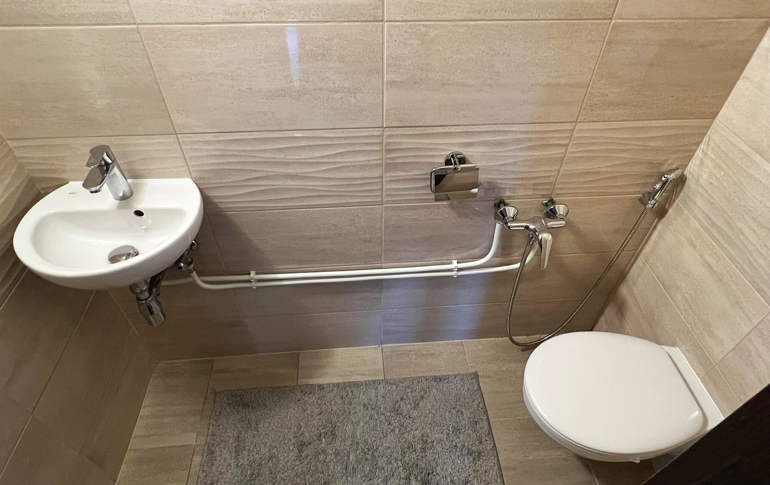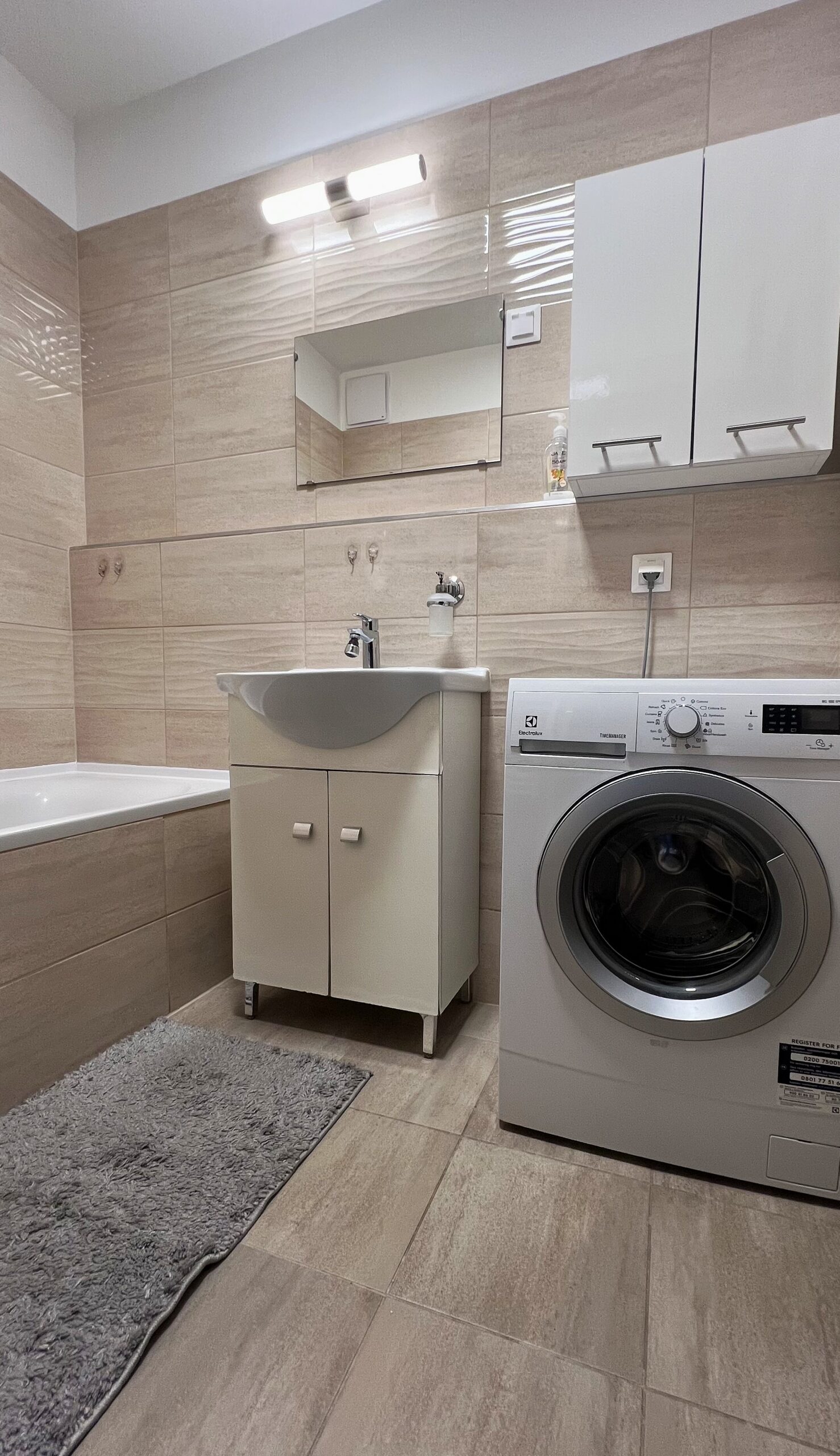 - Fürdőszoba: fürdőkád, zuhanyfüggöny, mosógép, hajszárító