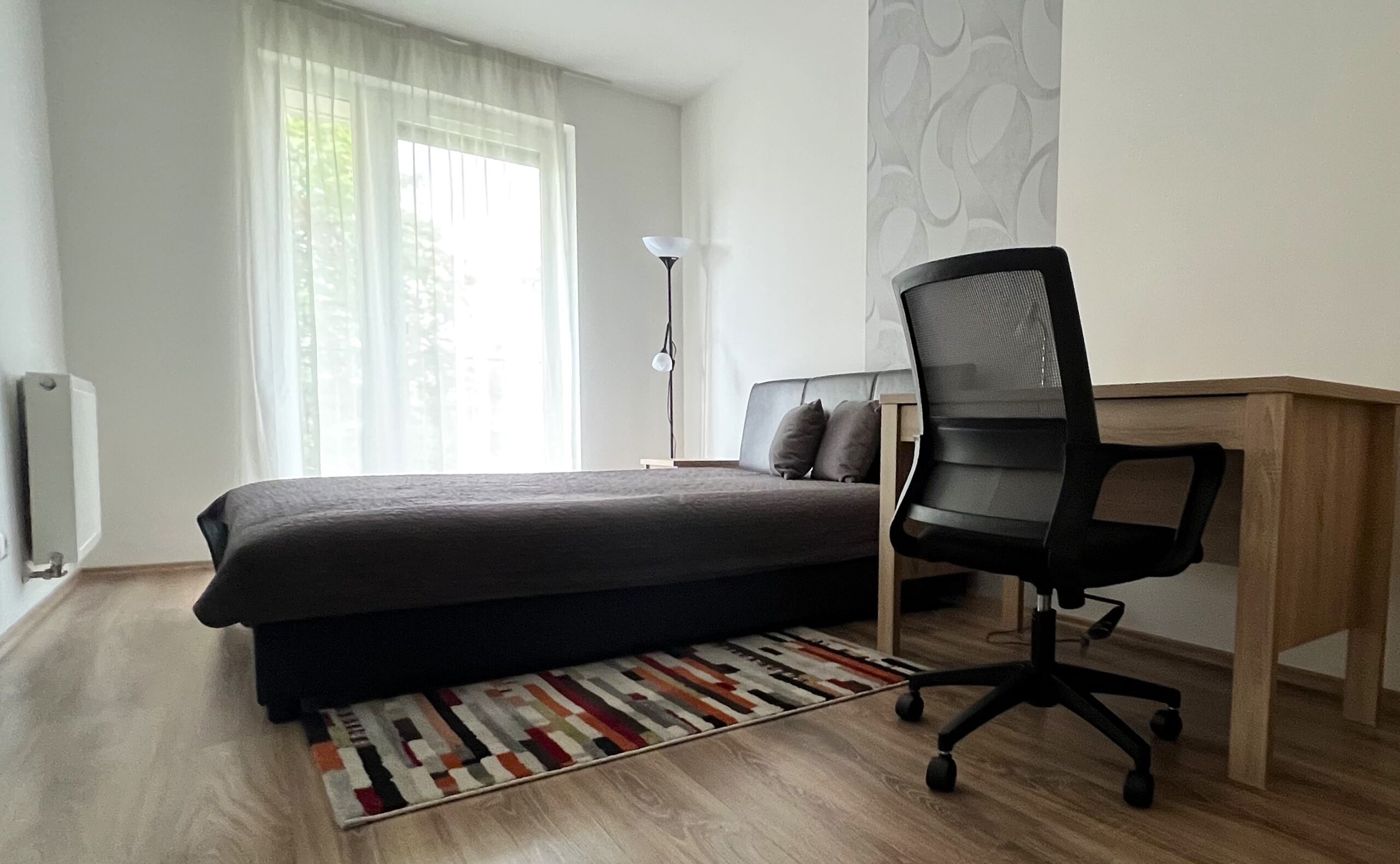 Fiatalos, letisztult apartmanok pár perc sétára az Egyetem Főépületétől. Nappali + 1 hálószobás, 2023-ban felújított apartman kiadó. A lakás fiatalos lendületű, tökéletes az egyetemisták számára, modern bútorokkal és kis- és nagy háztartási gépekkel ellátott. Az ablakokat automata redőnyökkel szereltünk fel, amelyek hozzájárulnak a kellemes beltéri klímához, valamint segítenek minimalizálni a külső zajokat és hőingadozásokat.